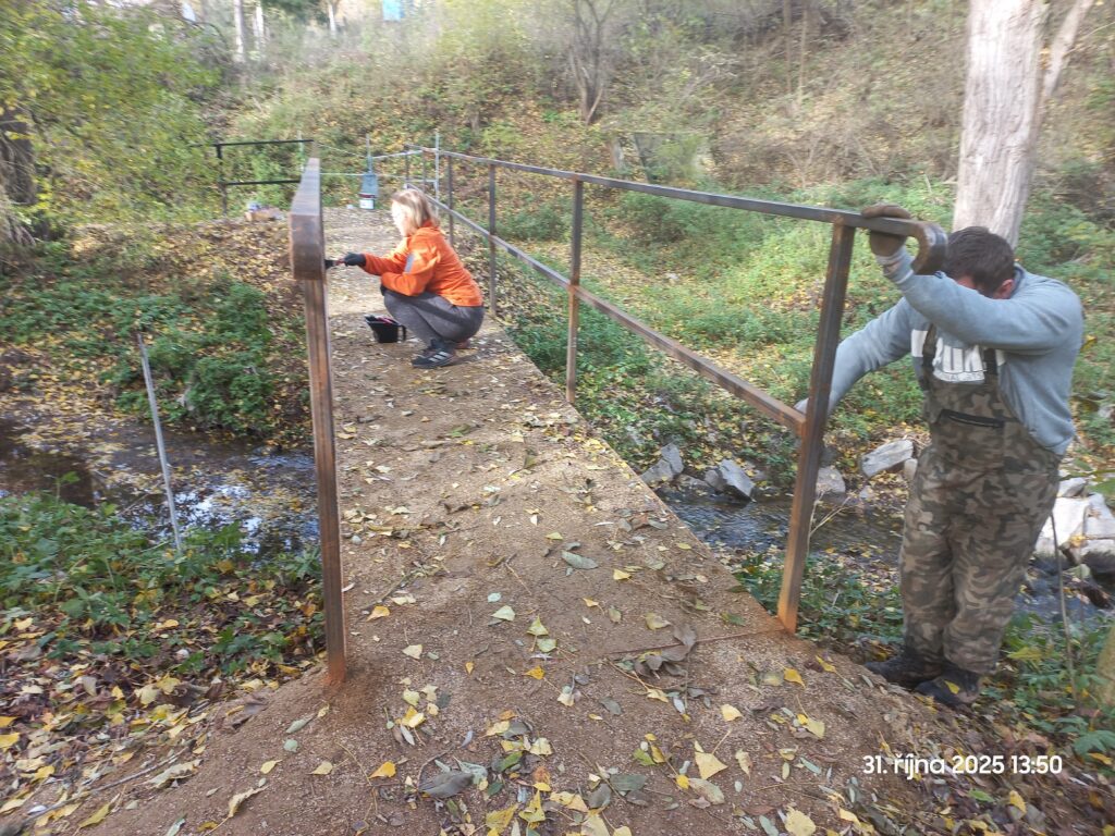 Aby však nevznikl mylný dojem, že náplní činnosti spolku je pouze občasné posezení v restauračním zařízení, v tento stejný pátek, ještě před zahájením setkání provedli předseda spolku a jeho dva členové kompletní nátěr nového mostku přes potok za ČOV zhotoveného pro snazší přístup kolem ČOV k vodní nádrži Brodky, pro který jsme (zatím interně) zvolili název „Karlův most„, neboť největší zásluhu na jeho stavbě má náš zakládající člen pan Karel Novotný.